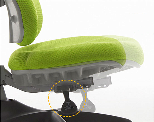 Рычаг, который находится под сидушкой регулирует глубину сиденья. Регулировка выполняется в зависимости от длины вашего бедра, чтобы спина плотно прилегала к спинке.