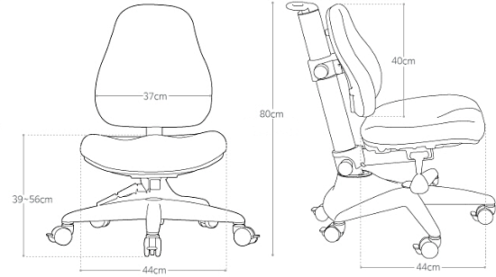 Независимая регулировка спинки и сидушки по высоте с помощью барашков позволяет настраивать кресло под особенности тела как ребенка, так и взрослого.