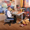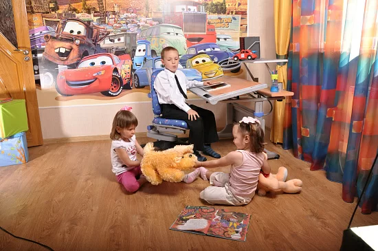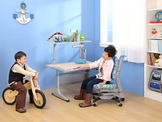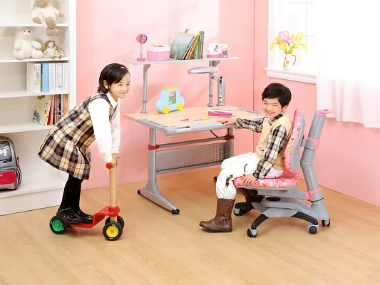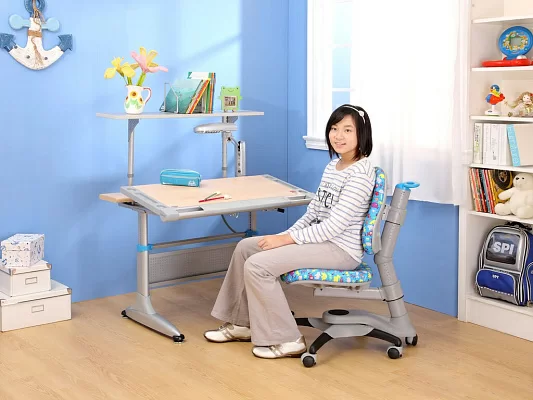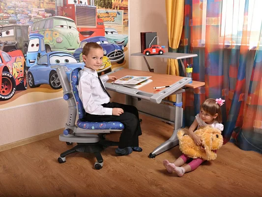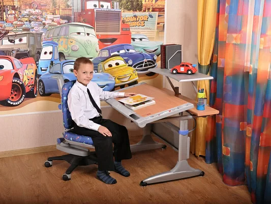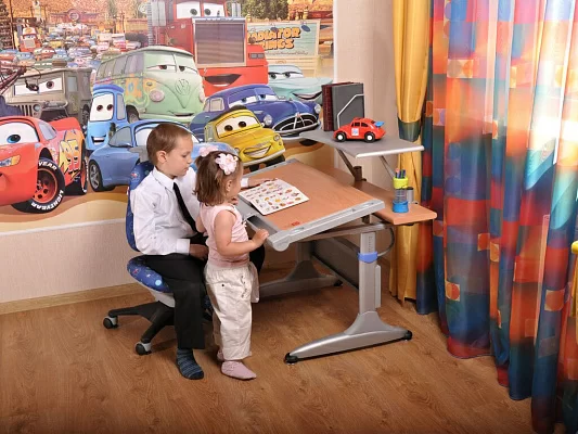 Но основной изюминкой данной модели можно назвать систему «газлифт», которая отвечает за подъём столешницы. С её помощью ребёнок легко сам сможет произвести настройку угла наклона, не прибегая к помощи взрослых. Вот так из простых и вполне очевидных дизайнерских решений вырисовывается общая картина уюта, комфорта и трогательной заботы о здоровье ребёнка.