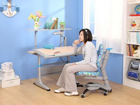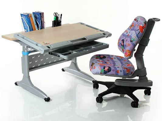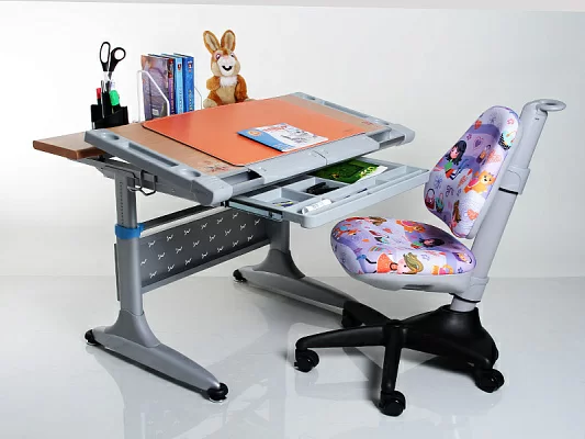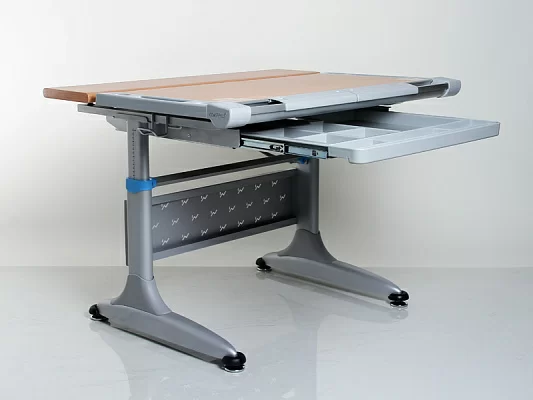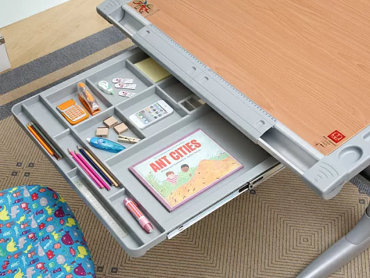 Благодаря задней приставке, рабочая поверхность столешницы значительно расширяется и позволяет легко расположить книги с тетрадями так, чтобы они не мешали занятиям малыша. Все же остальные школьные принадлежности легко поместятся в просторном выдвижном ящике и помогут обучить любимое чадо к порядку и организованности.