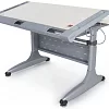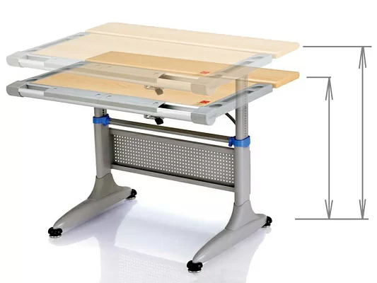 Угол наклона столешницы изменяется с помощью газ-лифта немецкой компании Stabilus, это обеспечивает плавность и безопасность наклона.