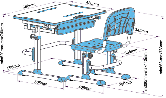 Cubby Karo - новая растущая детская парта со стульчиком. Очень важно, чтобы ребенок правильно сидел за столом при выполнении домашнего задания. Детская парта Karo предназначена для обеспечения более комфортной среды обучения. Стол и стул могут быть легко отрегулированы по высоте, что позволяет оптимально адаптировать его под соответствующий рост ребенка. Поверхность учебного стола можно наклонять до 35 градусов для удобного письма, чтения и рисования. Отсеки ящика в нижней части стола предоставляют достаточное количество пространства для книг и канцелярских принадлежностей.