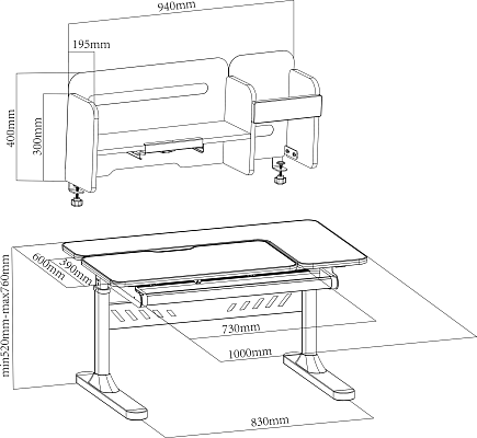 Наличие выдвижного ящика с отсеками и надстройки над столешницей создает дополнительное место для хранения книг, тетрадей, канцелярских принадлежностей и позволяет максимально эффективно использовать рабочее пространство