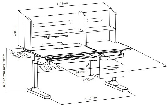 Парта (75 см.) + задняя двухъярусная приставка + две боковых приставки 75 см