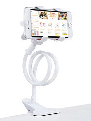 Держатель для телефона - важный аксессуар на письменном столе современного школьника. Зажим держателя оснащен мягкими накладками, которые крепко и надежно фиксируют телефон. Гибкая рукоятка позволяет регулировать высоту, а роликовая направляющая позволяет вращать телефон на 360 градусов. Держатель фиксируется на столешнице с помощью прищепки.