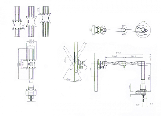 Устройство кронштейна для монитора вращается на 360 градусов, а также позволяет настроить правильное безопасное расстояние до глаз (расстояное от монитора до глаз должно быть 1,5 диагонали монитора)