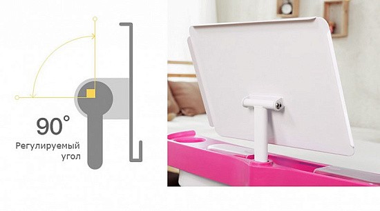 Прочная матовая столешница из МДФ дополнительно оснащена пластиковой полочкой, которая включает в себя пенал для карандашей, лампу, подстаканник и подставку для книг. Также столешница может изменять угол наклона. Покрытие столешницы устойчиво к механическим повреждениям и не отражает солнечные блики. Чтобы поддерживать стол в чистоте, достаточно протереть влажной тканевой салфеткой.