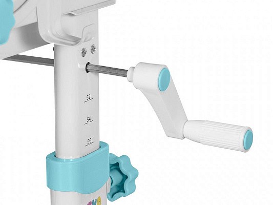Высота столика изменяется механизмом плавной регулировки специальной ручкой. Шкала соотношения роста ребенка к высоте столика поможет правильно подобрать параметры. Данный комплект подходит для детей от 3-х лет. На ножках есть специальные мебельные опоры, которые можно отрегулировать в случае неровности пола.
