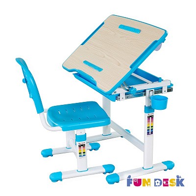 «ФанДеск» могут регулировать высоту парты под рост ребенка, а столешница может изменять угол наклона. Каждую модель можно оборудовать дополнительными аксессуарами. Парта «FunDesk» имеет множество ящиков для хранения канцелярских принадлежностей и тетрадей.