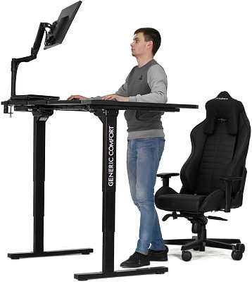 Generic Comfort серии Uno – эргономичные столы, обеспечивающие большую вариативность поз при работе за компьютером. Основная идея при их создании - максимальный комфорт работника на протяжении всего рабочего дня. Столы серии Uno обладают быстрой и плавной регулировкой столешницы по высоте. Она происходит при помощи электроприводов, управляемых пультом в передней части столешницы. Вы можете подобрать оптимальную высоту стола не отвлекаясь от работы. В передней части столешницы присутствует специальная ниша в форме трапеции, ширина которой достаточна, чтобы придвинуться к столу вплотную вместе с креслом. Кроме того столешница оснащена регулируемым наклонным сегментом, что является главной особенностью столов данной серии. Его угол можно подобрать так, что вы сможете работать за столом практически лежа. При этом руки всегда лежат на поверхности наклонного сегмента и остаются расслабленными. Все эти опции позволяют работать за столом с максимальным комфортом сидя, стоя, полулежа, или в движении на беговой дорожке. В сочетании с кронштейном для монитора и игровым компьютерным креслом, стол GC Uno - это полноценная рабочая станция, аналогов которой по соотношению цены, качества и функционала не существует.