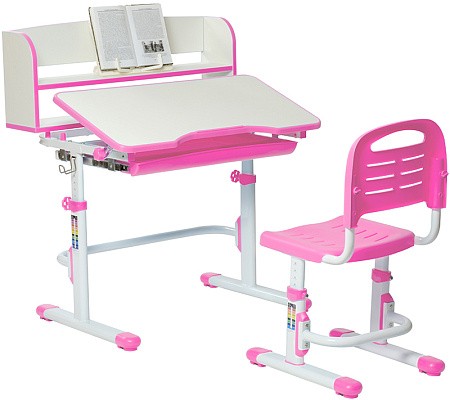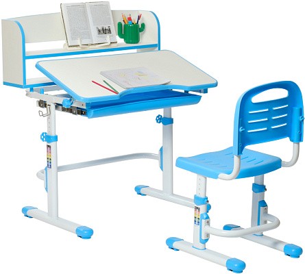 Комплект растущей детской мебели Holto-26: парта с полкой-надстройкой и регулируемой подставкой для книг, куда ребенок может поставить книгу и другие мелочи, растущий стул. Комплект обеспечит ребенку хорошую правильную осанку на начальную школу и дошкольную подготовку. Наклон столешницы изменяется от 0 до 50 градусов. Парту возможно превратить в мольберт, что позволит ребенку рисовать в положении стоя. Ограничительный бортик не даст бумаги упасть. Стол оснащен крючком для портфеля и выдвижным органайзером для порядка на рабочем месте. Комплект подходит для роста от 110 до 170 см. Максимальная нагрузка 60 кг. Ножки оснащены регуляторами высоты для компенсации неровностей пола. Высота парты регулируется от 54 до 76 см.