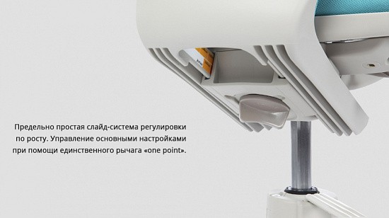 Высокая спинка имеет ярко выраженный ортопедический обхват, помогает пользователю добиться правильного расположения всех отделов позвоночника и поясницы. Она сделана с применением технологии Duoflex, регулируется по росту, в глубину, что позволяет персонализировать ее под особенности телосложения в период интенсивного роста.