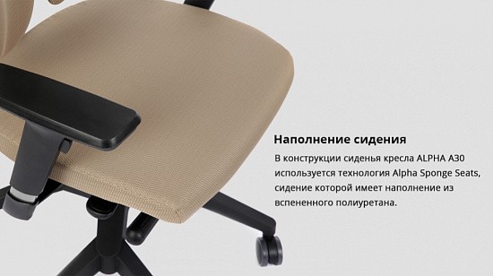 В конструкции сиденья кресла DUOREST ALPHA A30H используется технология Alpha Sponge Seats, сидение которой имеет наполнение из вспененного полиуретана.