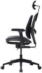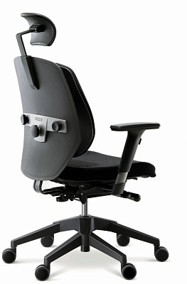 Кресла выполнены в черном цвете, что в сочетании с элементами настройки спинки, отделанными хромом, выглядит очень современно и статусно.