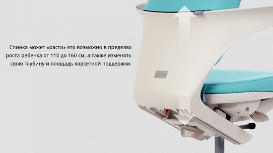 Высокая спинка имеет ярко выраженный ортопедический обхват, помогает пользователю добиться правильного расположения всех отделов позвоночника и поясницы. Она сделана с применением технологии Duoflex, регулируется по росту, в глубину, что позволяет персонализировать ее под особенности телосложения в период интенсивного роста.