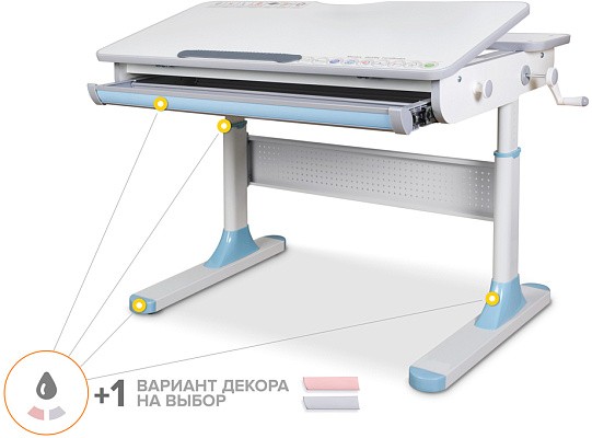 Одной из важных особенностей детской парты BD-610 Edmonton Lite является наличие цветных накладок в подарок! Приобретайте растущий стол и получите один з цветных наборов накладок совершенно бесплатно! Накладки представлены в розовом и голубом цветах.
