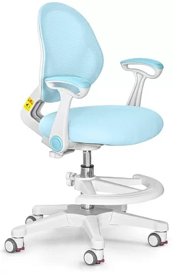 Подставка для ног из прочного пластика регулируется по высоте и вращается вокруг своей оси. Благодаря наличию регулируемой подставки кресло подходит к стандартным, нерегулируемым столам. Нейлоновые колесики плавно скользят по полу, не повреждая его. Движение кресла блокируется при нагрузке от 20 кг. Блокировку можно отключить специальными стопорами.