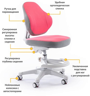 Регулируемая подставка для ног создана из прочного пластика, она легко вращается на 360 градусов. Наличие подставки позволяет использовать кресло с нерегулируемыми столами.