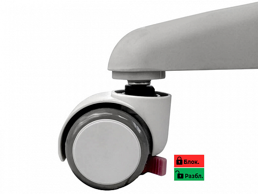 Нейлоновые колесики автоматически блокируются при нагрузке от 20 кг. Блокировка отключается специальными стопорами.
