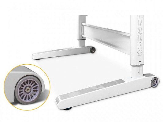 Массивные металлические ножки стола дополнены специальными регулировочными мебельными опорами для обеспечения его устойчивости. А также, на ножках есть колесики для удобного перемещения стола по комнате.