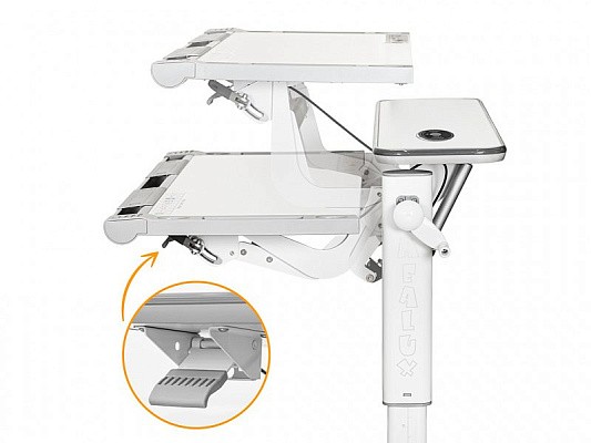 С помощью специальной ручки можно регулировать высоту рабочей части столешницы. Заданная высота устанавливается независимо от высоты всей конструкции стола.