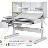 Важной особенностью данного стола является наличие сменных цветных накладок. Приобретайте стол серого цвета и получите на выбор голубые, либо розовые накладки. Накладки меняются на ножках, пластиковом выдвижном органайзере, выдвижном ящике и полочке на надстройке. Меняйте цвет декора в зависимости от настроения вашего ребенка!