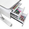 Стол имеет большой выдвижной органайзер размещенный под столешницей, который изготовлен из прочного, безопасного пластика.