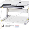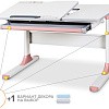 Подвижная часть столешницы меняет свой угол наклона с помощью специального газлифта. Одно плавное нажатие и вы трансформируете рабочую зону для письма и чтения, а благодаря большому углу наклона (до 60 градусов) столешницу можно использовать для рисования, как мольберт. Чтобы ребенок не травмировался, когда самостоятельно будет менять угол наклона, на столешнице есть безопасный зазор.