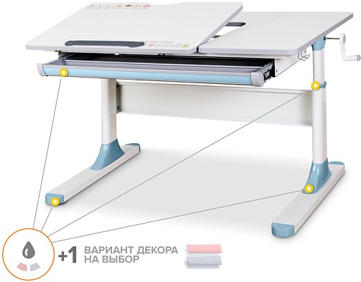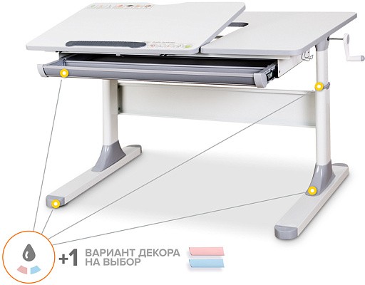 Важной особенностью данного стола является наличие сменных цветных накладок. Приобретайте полную комплектацию стола в сером цвете и получите розовые либо голубые накладки совершенно бесплатно! Накладки меняются на ножках и выдвижном органайзере.. Меняйте цвет в зависимости от настроения!