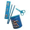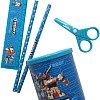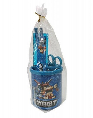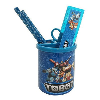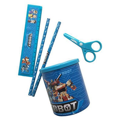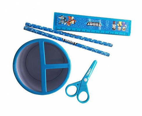 Настольный набор "Tobot" из высококачественного пластика, 4 предмета. В состав набора входят: безопасные ножницы, линейка, 2 чернографитовых карандаша.