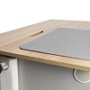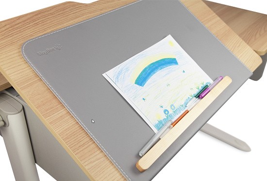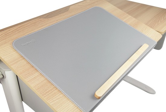 SingBee CB-M01 является не только защитой рабочей поверхности от повреждений, но и значительно добавляет комфорта во время учебы. Накладка выполнена из металла, благодаря чему плотно и надежно располагается на столе, а магниты, установленные в столешнице, усиливают крепление. Обивка выполнена из высоко качественной эко кожи, позволяющей без труда оттереть загрязнения, а также сделать письмо более комфортным за счёт мягкости материала. Серый цвет обивки отлично сочетается с боковыми фасадами стола, а белая строчка по краям придает эстетический вид. Для предотвращения падения книг во время изменения наклона и облегчения процесса рисования в комплекте идет магнитный ограничитель, который можно разместить в любой части накладки, а при необходимости снять.