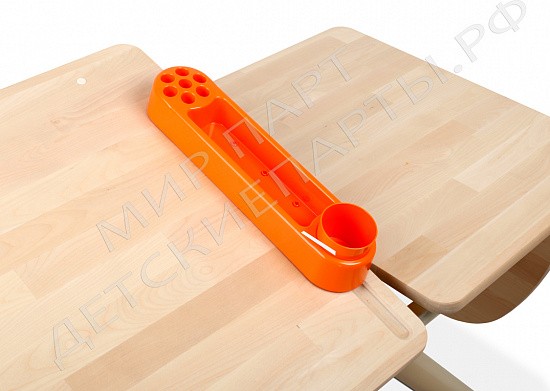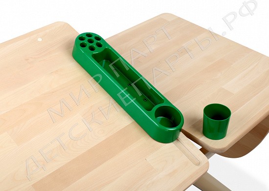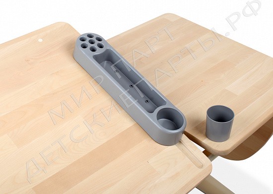 Ваш ребёнок тратит много времени на подготовку к выполнению домашнего задания? Возможно, дело в том, что он мысленно собирается с силами, но есть вероятность того, что ему действительно неудобно искать ручки в портфеле или тумбочки. В этом случае на помощь придёт удобный и эргономичный пенал-органайзер. Он крепится на краю столешницы растущей парты с любой стороны и позволяет удобно хранить все канцелярские принадлежности. Даже при подъёме столешницы в режим «чтения» Вы можете не беспокоиться, что ручки и карандаши окажутся на полу, потому что его конструкция предусматривает такую возможность. Пенал-органайзер – полезный и эргономичный аксессуар, обеспечивающий комфорт ребёнка во время учёбы и позволяющий не тратить слишком много времени на подготовку к занятиям.