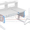 Парта 120 см с раздельной столешницей + 2 задние двухъярусные приставки