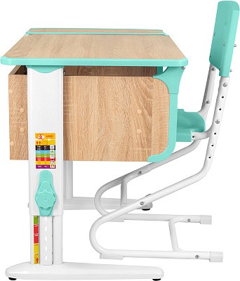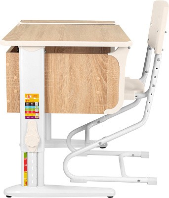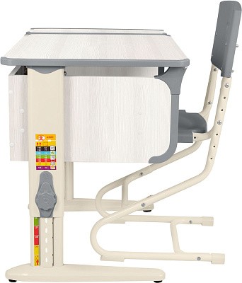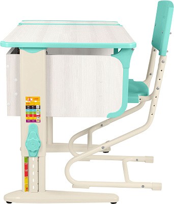 Уникальной особенностью модели «СУТ-41-01-К» является современный дизайн. Трендовые, мягкие цвет делает комнату светлее, способствует созданию рабочего настроения и не утомляет глаза ребёнка. Для снижения уровня детской травматичности предусмотрены пластиковые накладки, полиуретановый бампер, надежный многоуровневый механизм фиксации высоты.