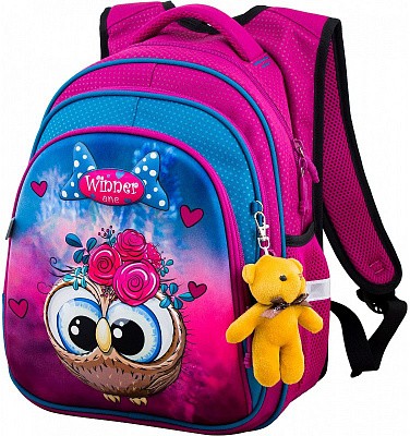 В школьном рюкзаке два основных отделения и карман-органайзер. Основное отделение с 2 двумя разделителями и резинкой для крепления школьных принадлежностей. Второе отделение без наполнения. Спереди вместительный карман на молнии украшенный объёмной 3D картинкой с органайзером для письменных принадлежностей. По бокам карманы-сеточки на резинке.