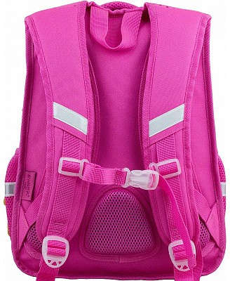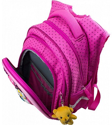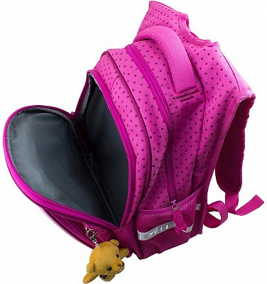 В рюкзаке три отделения. Первое основное и второе отделения без наполнения. Третье отделение с органайзером для письменных принадлежностей. По бокам два кармана-сеточки на резинке.
