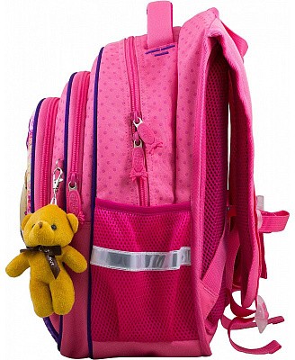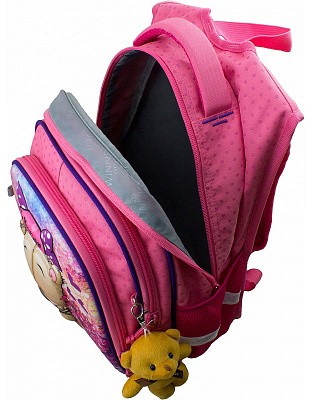 В рюкзаке три отделения. Первое основное и второе отделения без наполнения. Третье отделение с органайзером для письменных принадлежностей. По бокам два кармана-сеточки на резинке.